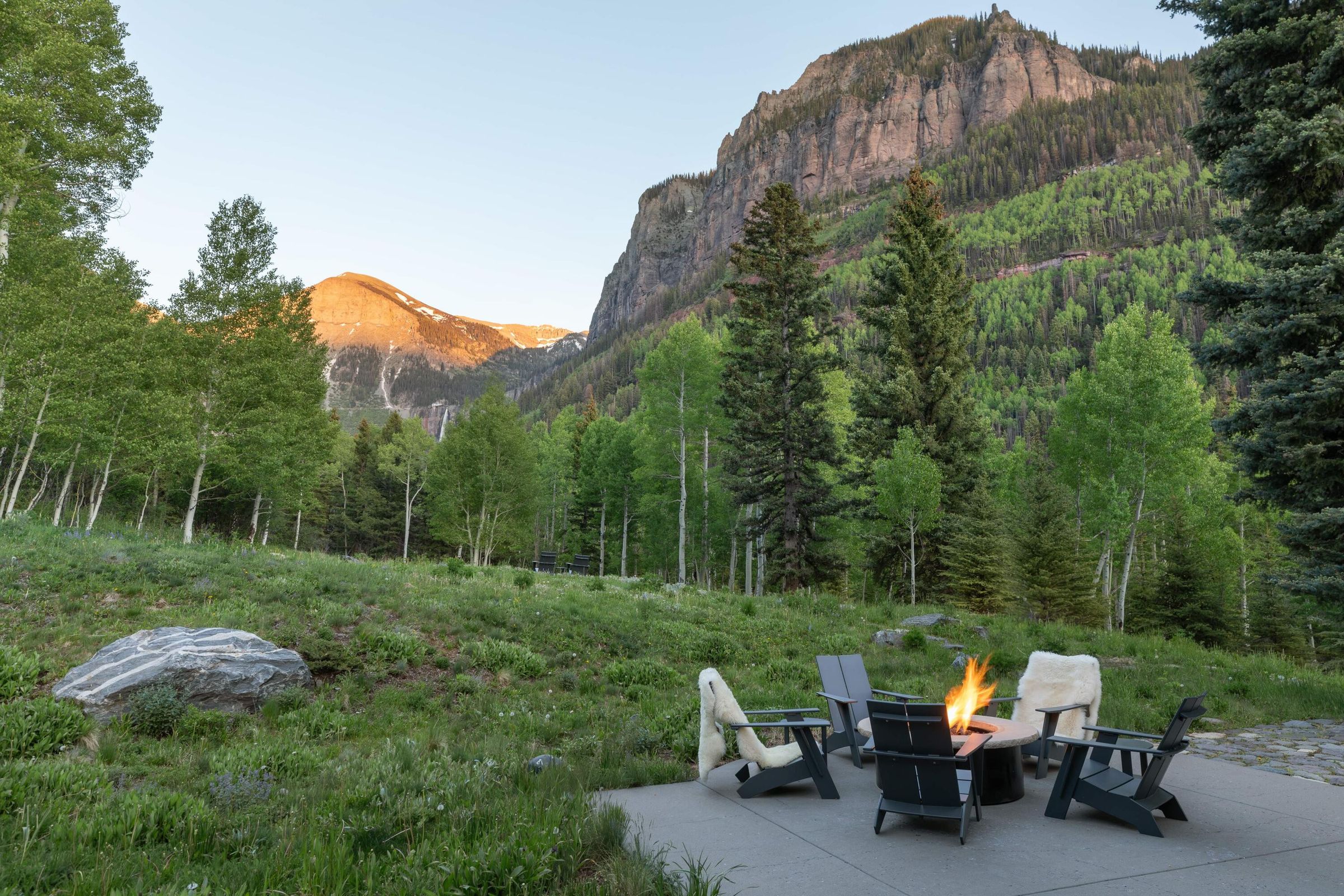 More than just a home, 236 Pandora Lane is a true sanctuary, an immersive experience where nature, visionary design, and the soul of the Telluride mountains converge. Set on five pristine acres, this estate is enveloped by a natural buffer of pine and aspen trees, ensuring unmatched privacy while being within easy walking distance to town. An open meadow expands before you, framed by towering canyon walls and majestic peaks, creating the sensation of your own private national park without another home or soul in sight.